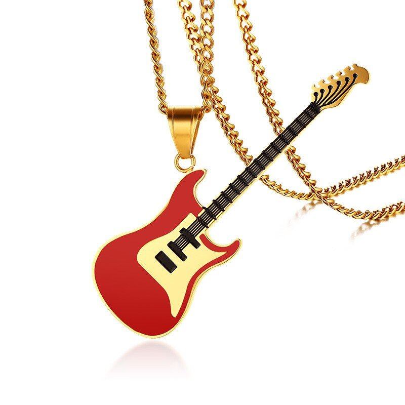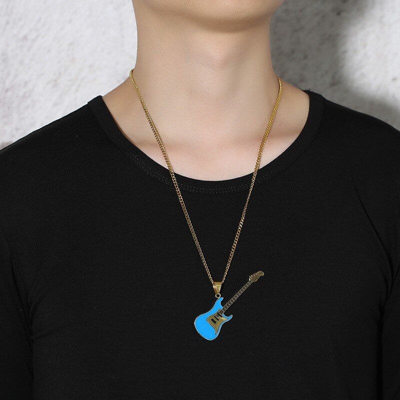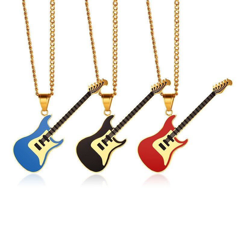 ギター ペンダント レディース メンズ ネックレス ステンレス ミュージック クラブ アクセサリー カジュアル パンク ユニセックス 61cm チェーン