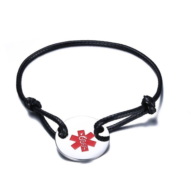 メディカル アラート 星 スター ライフ ブレスレット ステンレス コイン ブラック 赤 レッド ロープ バングル フリーサイズ サイズ 5.510 刻印