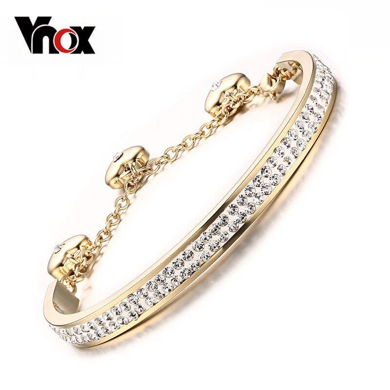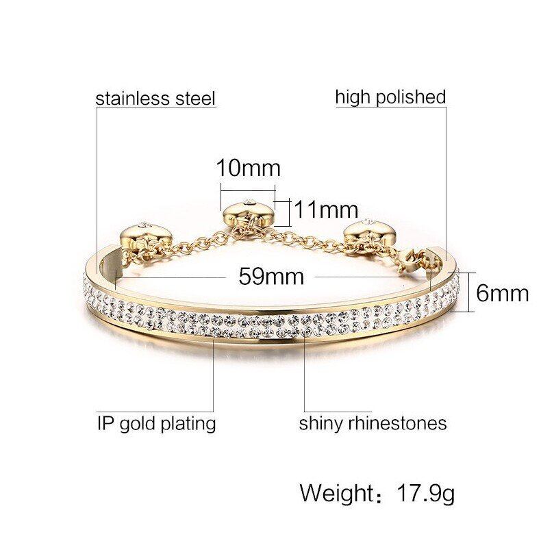 レディース バングル ブレスレット クリスタル ステンレス ゴールド フリーサイズ 長さ