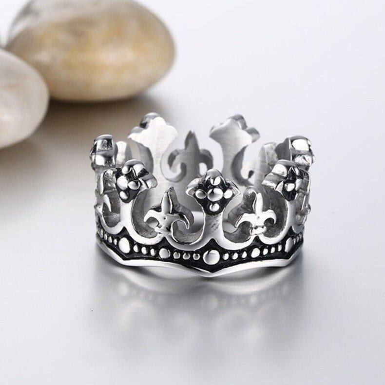 メンズ リング 指輪 ブラック ロイヤル キング クラウン 騎士 花 クロス ビンテージ リング 指輪 メンズ