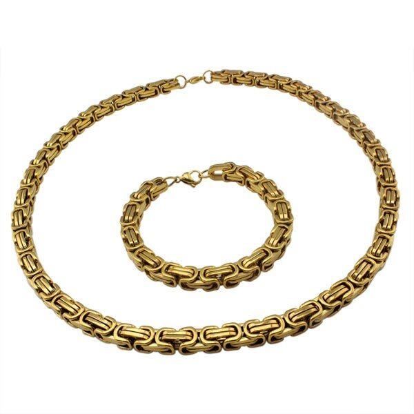 厚い ビザンチウム ネックレス ブレスレット セット ステンレス メンズ チェーン ヘビー メタル パンク
