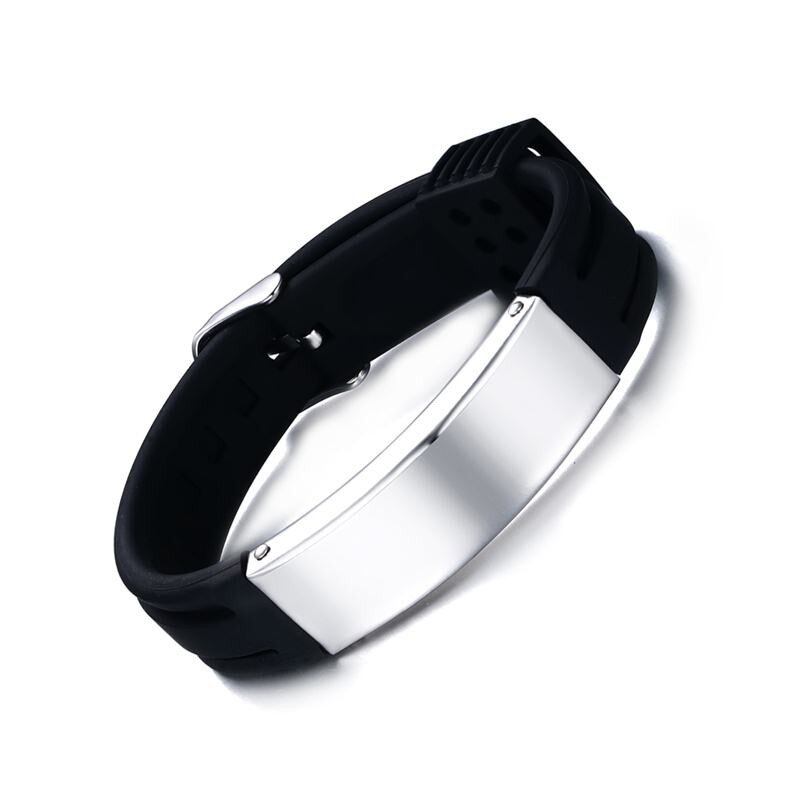 DY 刻印 ブレスレット バングル クール ブラック シリコン メンズ スポーツ ステンレス