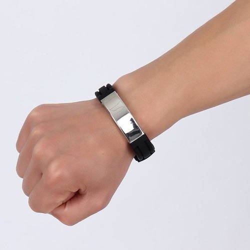 【送料無料】 DY 刻印 ブレスレット バングル クール ブラック シリコン メンズ スポーツ ステンレス 40001275