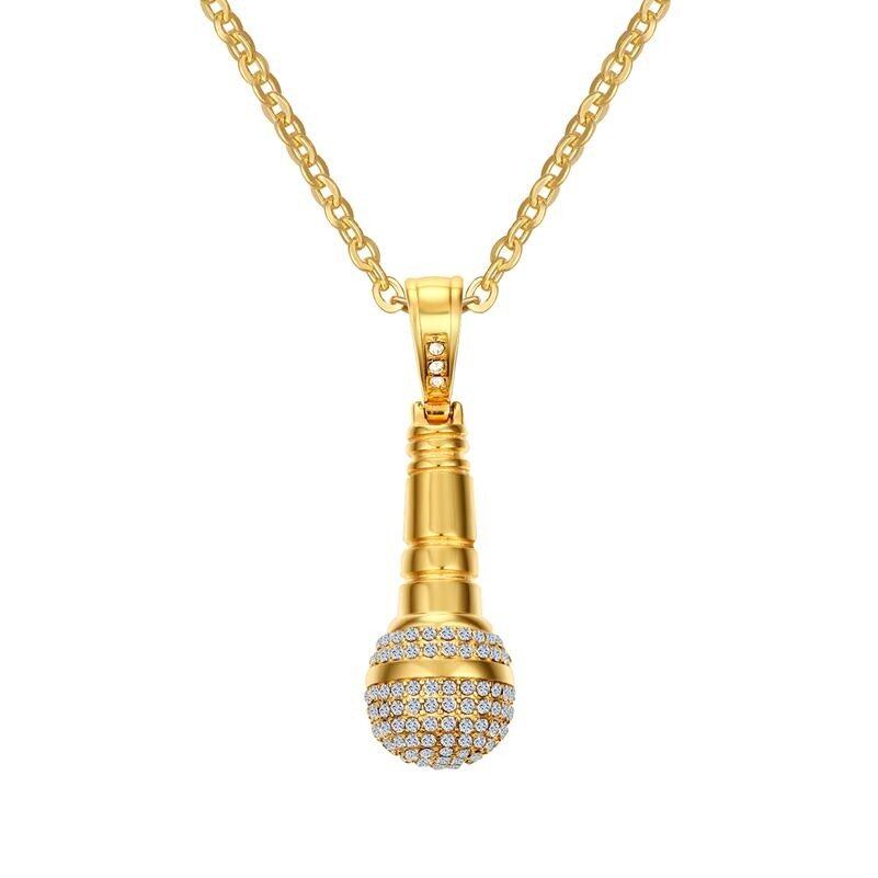 ロック パンク マイクロフォン ネックレス ペンダント メンズレディース ステンレス ゴールド キュービックジルコニア 石 ヒップ ホップ ネックレス