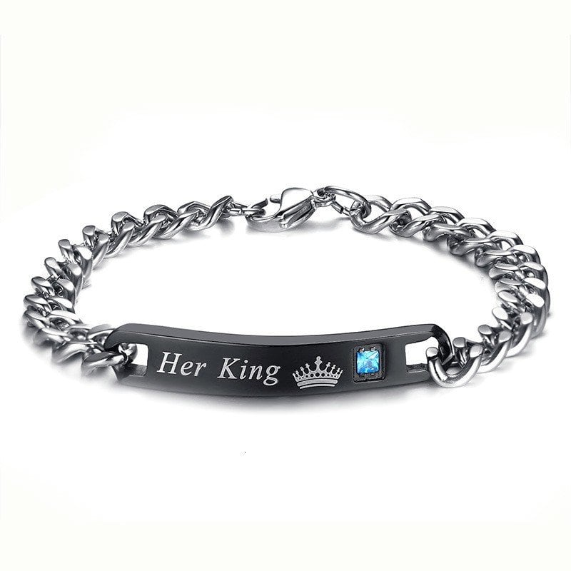 クラウン クイーン キング 刻印 カップル ブレスレット レディース メンズ ステンレス バレンタイン