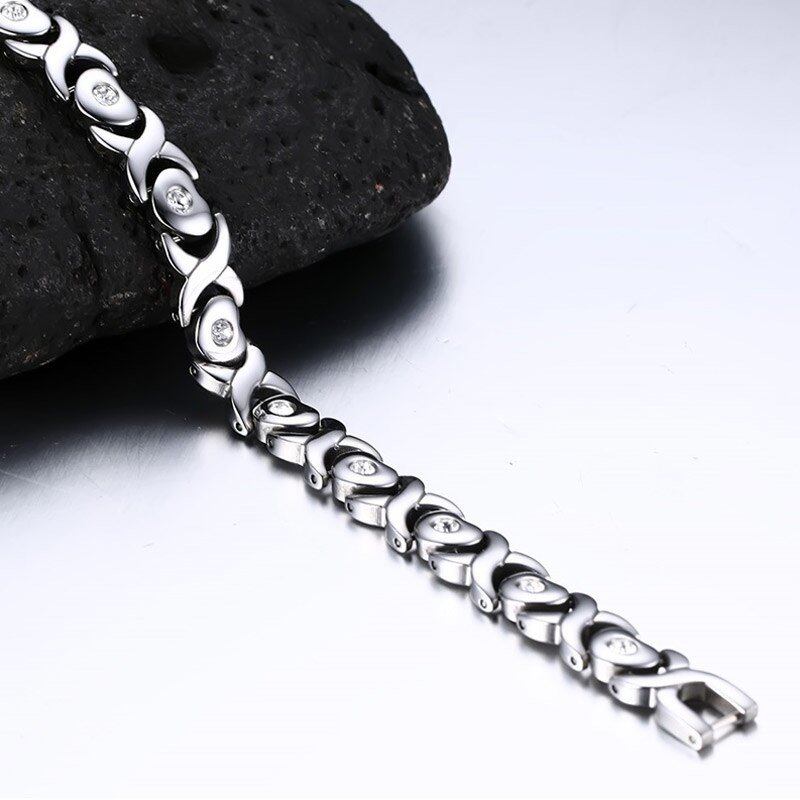 【送料無料】 レディース ブレスレット バングル マグネティック ステンレス ハート ジルコン 健康 ケア 40001328