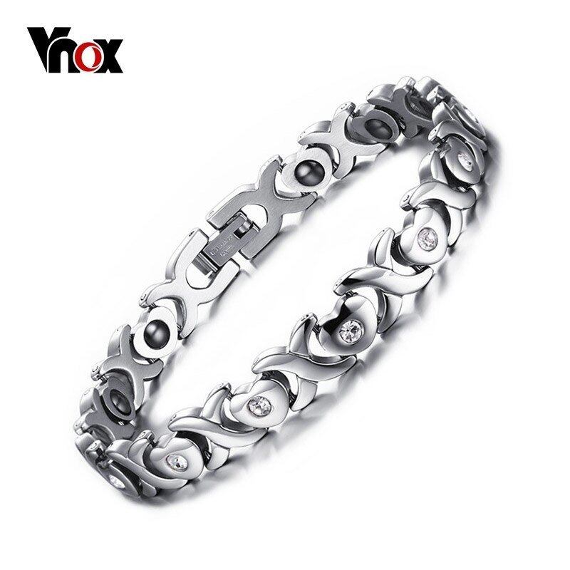 レディース マグネティック ヘマタイト ブレスレット バングル ステンレス ハート ジルコン 健康 ケア