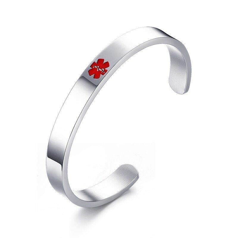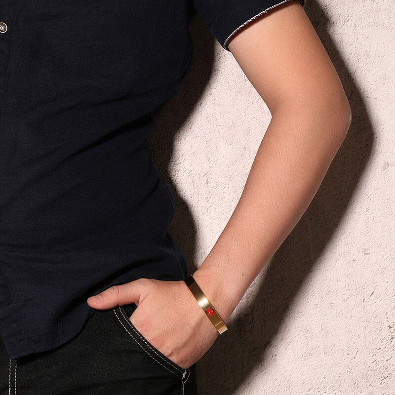 10mm 刻印 メンズ バングル メディカル アラート ブレスレット ステンレス シルバー ブラック ゴールド カラー エマージェンシー メンズ