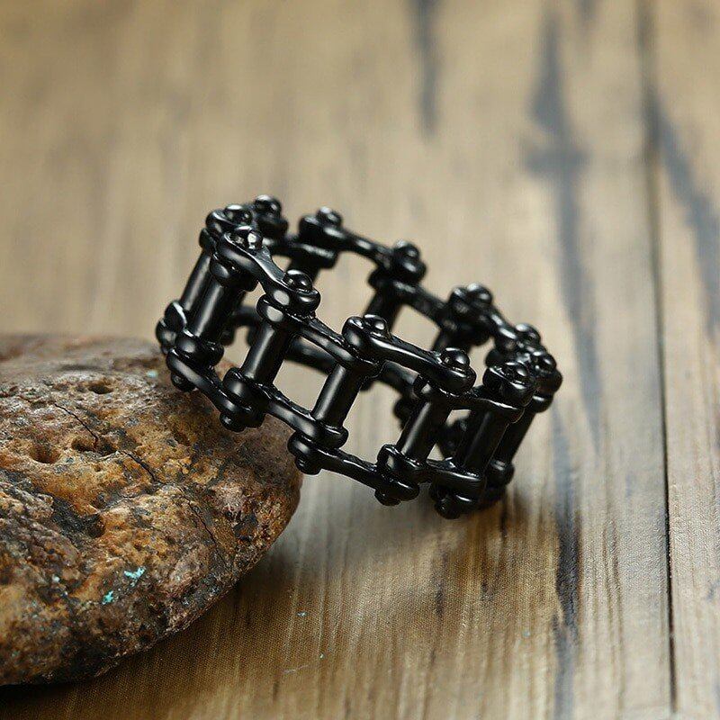 スタイリッシュ パンク オートバイ バイカー チェーン リング 指輪 メンズ ブラック ステンレス 自転車 リンク バンド メンズ ロック