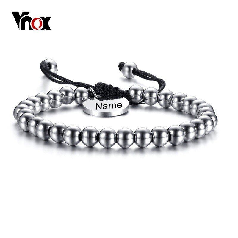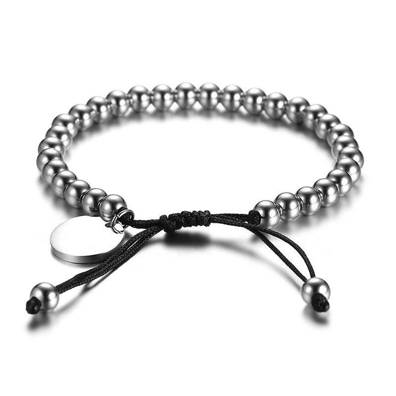 名前 チャーム 6mm ステンレス ビーズ レディース メンズ ブレスレット バングル フリーサイズ ユニセックス