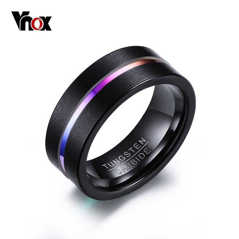 8mm タングステン カーバイト リング 指輪 メンズ 薄い レインボー カラー ライン 結婚式 リング 指輪