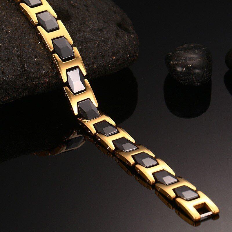 ブラック セラミック ゴールド ステンレス ブレスレット バングル メンズ 磁石 ゲルマニウム 健康