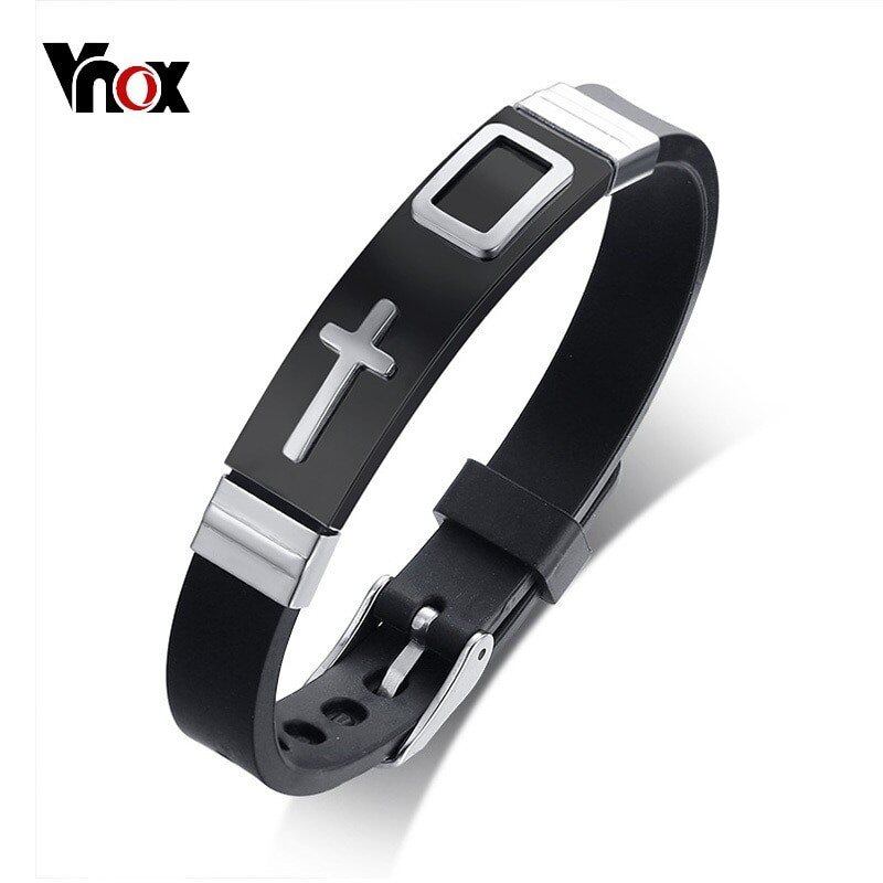カジュアル ブラック 手首 ストラップ フリーサイズ ブレスレット メンズ レディース クロス チャーム ラップ ブレスレット バングル 祈り ユニセックス