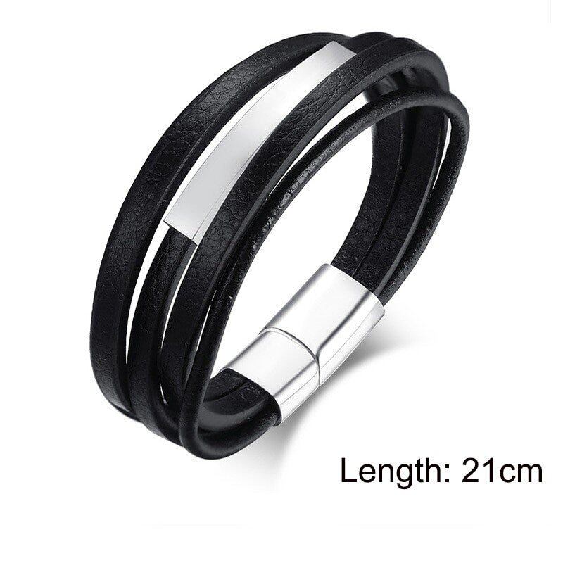 メンズ チャーム クラシック ブレスレット マルチレイヤー レザー ブレスレット バングル ステンレス 磁石 バックル ブレスレット メンズ