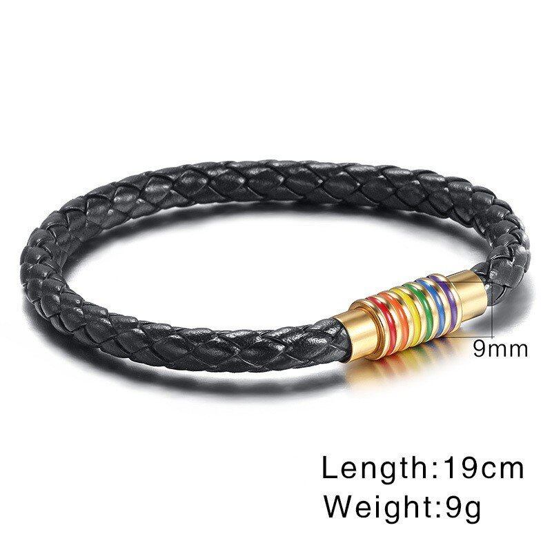 メンズ レインボー チャーム レザー ブレスレット ステンレス アクセサリー 編み込み ブレスレット メンズ ホリデイ