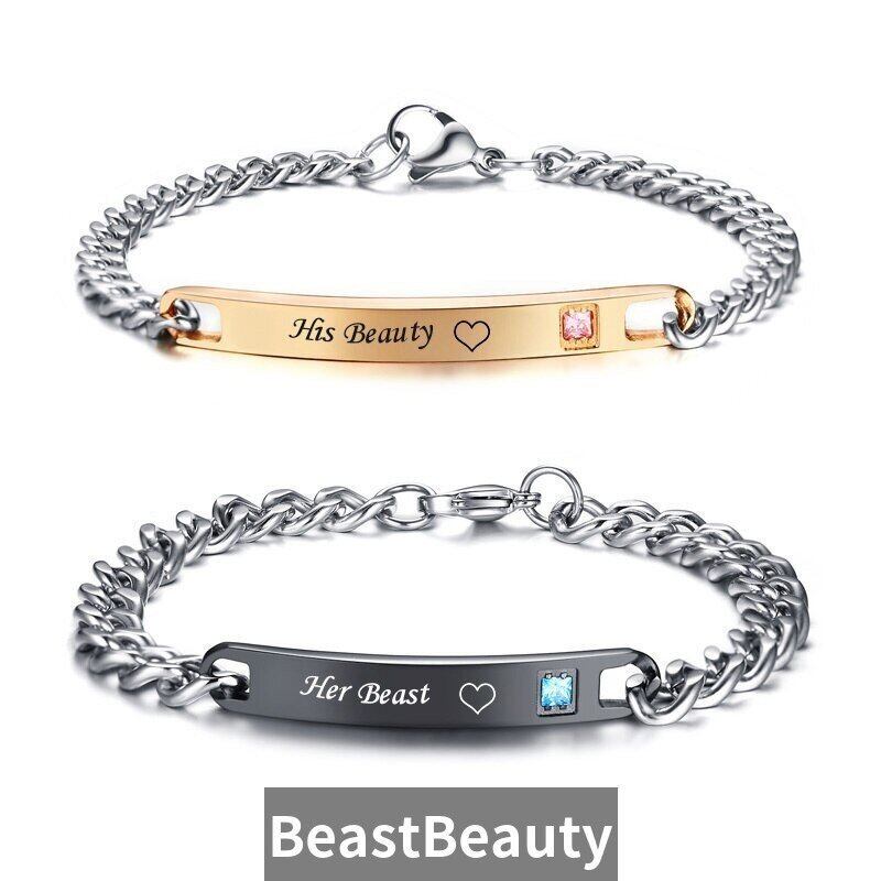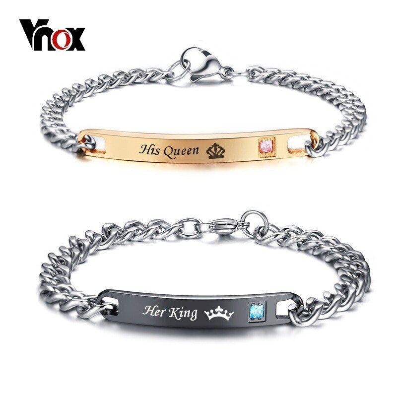 マッチング セット カップル ブレスレット ステンレス クイーン キング 約束 LOVE ブレスレット