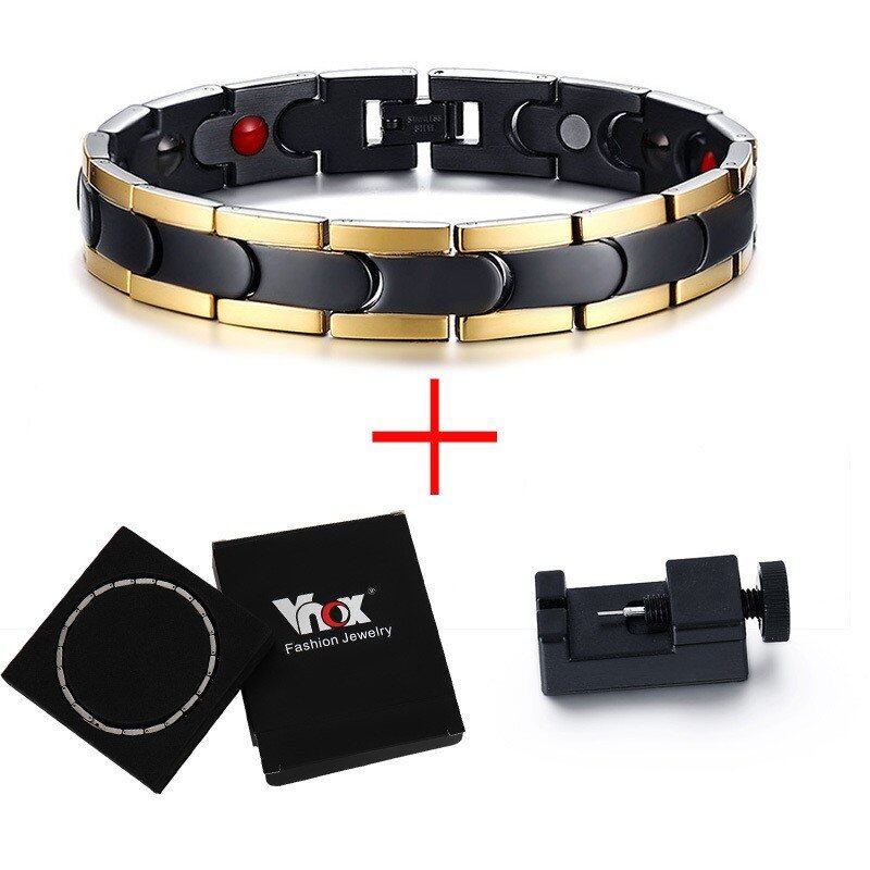 ダブル 行 4 1 エレメント エネルギー マグネティック ブレスレット メンズ スタイリッシュ ヒーリング ヘルシー ブレスレット バングル ボックス