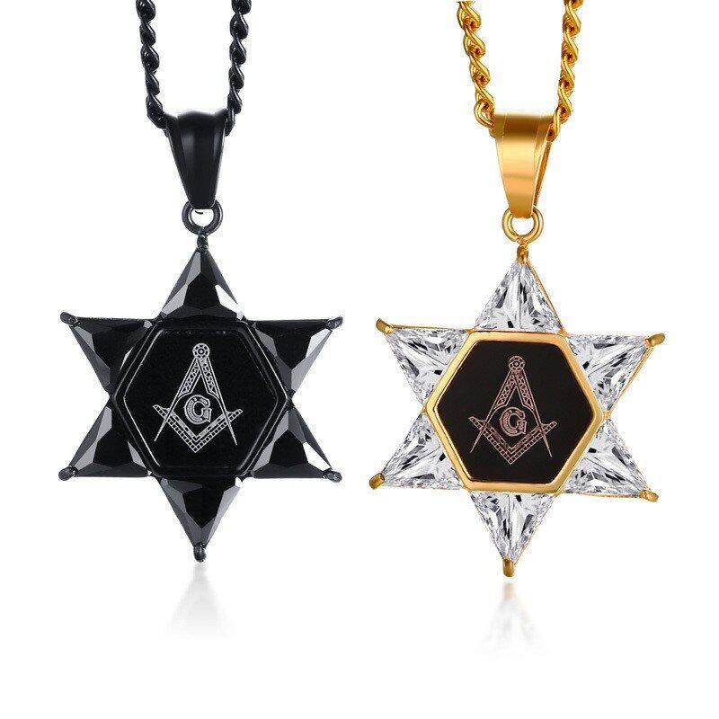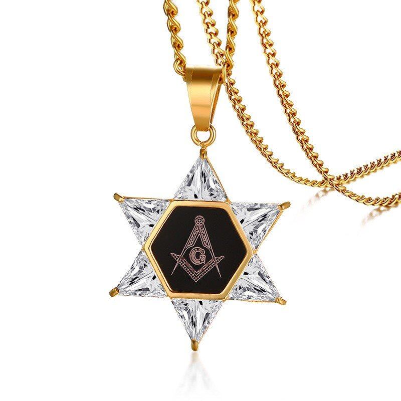 【送料無料】 メンズ ネックレス 星 スター ペンダント AAA キュービック ジルコニア フリーメーソン チェーン 61cm 40001728