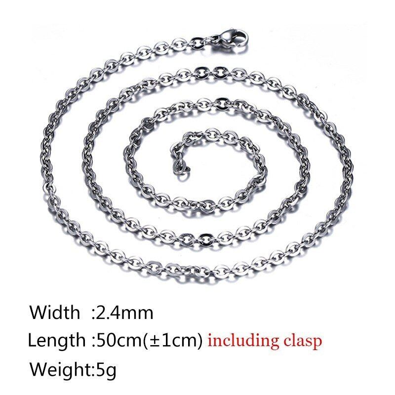 キューバ ネックレス シルバー 2.0mm 2.4mm 3.2mm ラウンド リンク チェーン ステンレス チョーカー ネックレス ユニセックス 50cm
