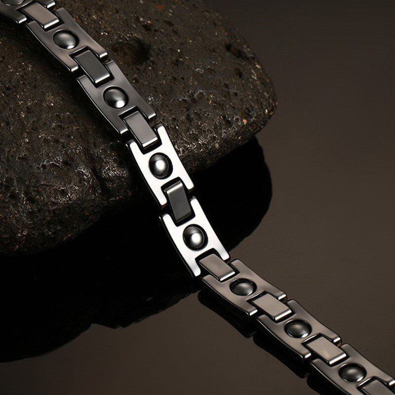 マグネティック ブレスレット メンズ エネルギー ヘルシー ブラック 陶芸 ステンレス チェーン フリーサイズ サイズ