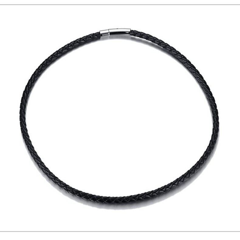 メンズ レザー コード チョーカー ネックレス 20 ブラック 編み ロープ ステンレス 留め金