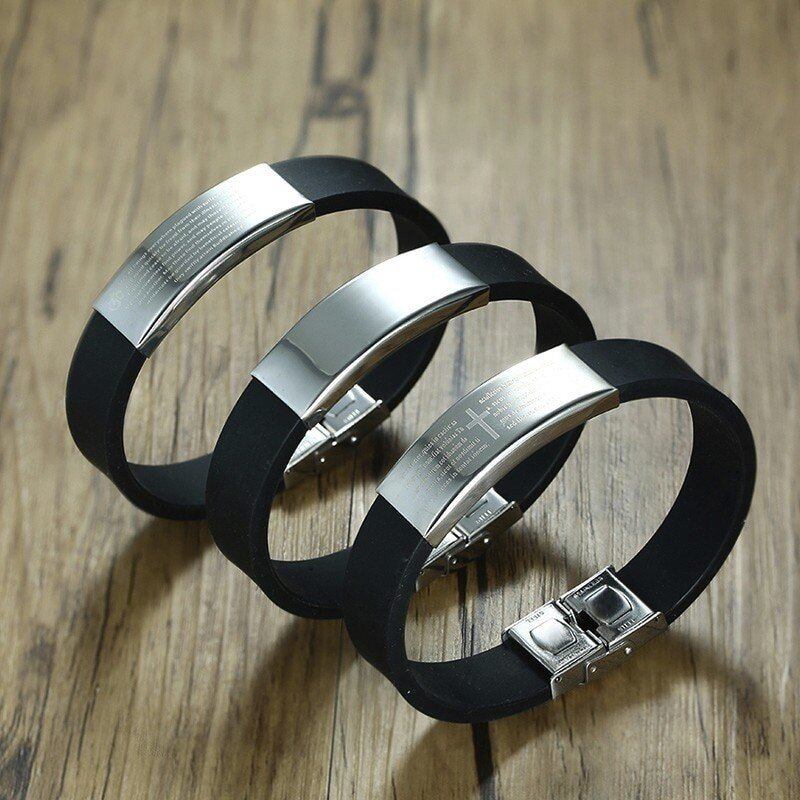 16mm ワイド AUM 祈り ブレスレット メンズ パーソナライズ 刻印 ステンレス タグ シリコーン バングル