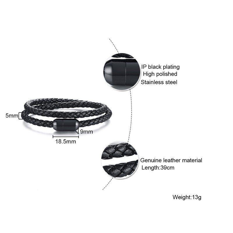【送料無料】 スタイリッシュ メンズ 編み 純正 レザー ブレスレット バングル ステンレス マグネティック バックル ラップ 40001874