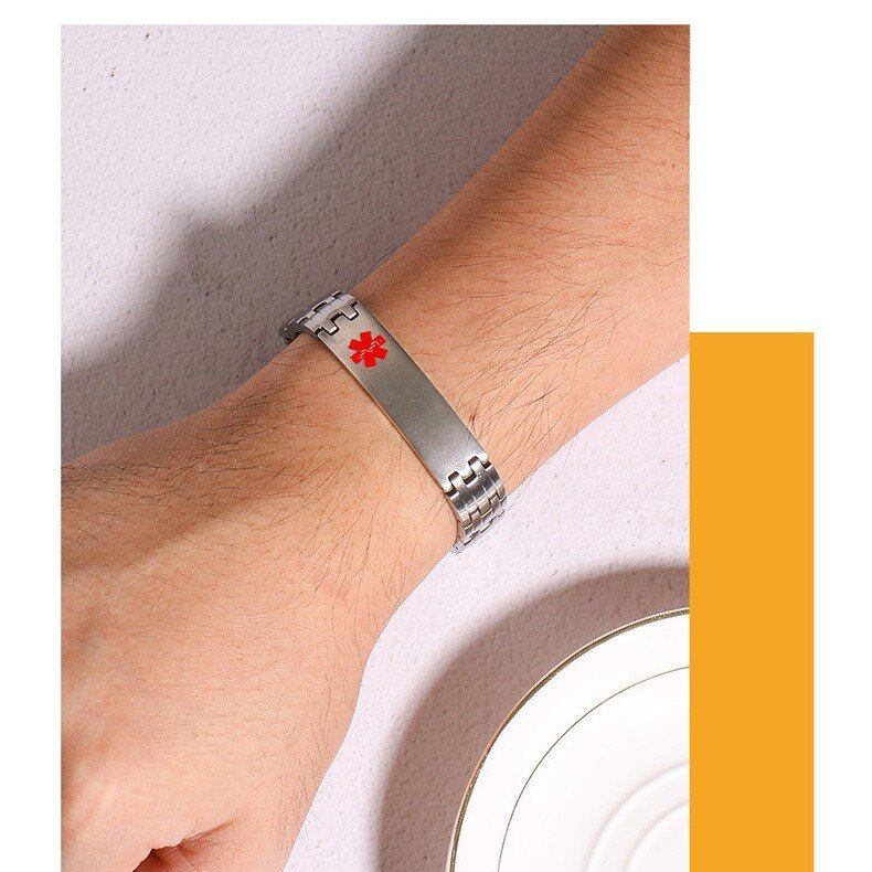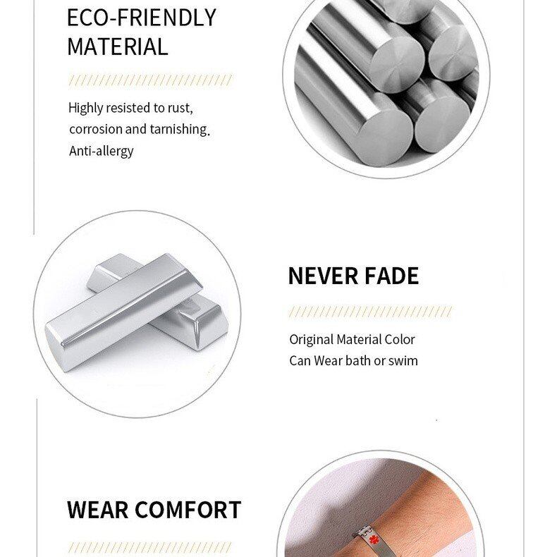医療 アラート ID ブレスレット メンズ 自由 刻印 ステンレス バー バングル カジュアル 緊急 リマインダー