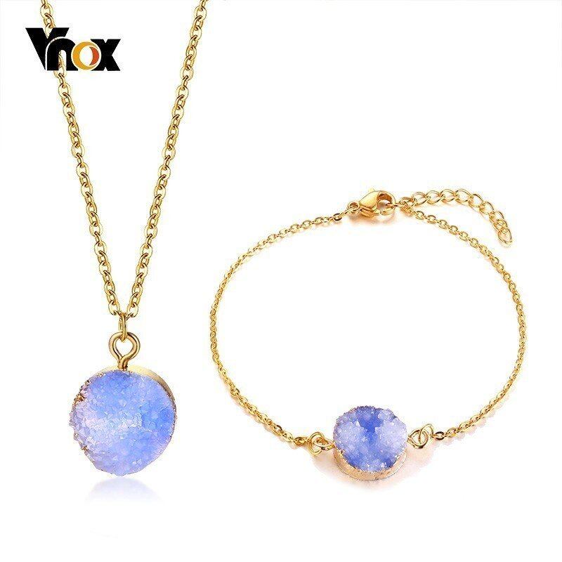 エレガント ナチュラル ストーン 不定期 ペンダント ブレスレット レディース セット ゴールド トーン ステンレス ネックレス パーティー