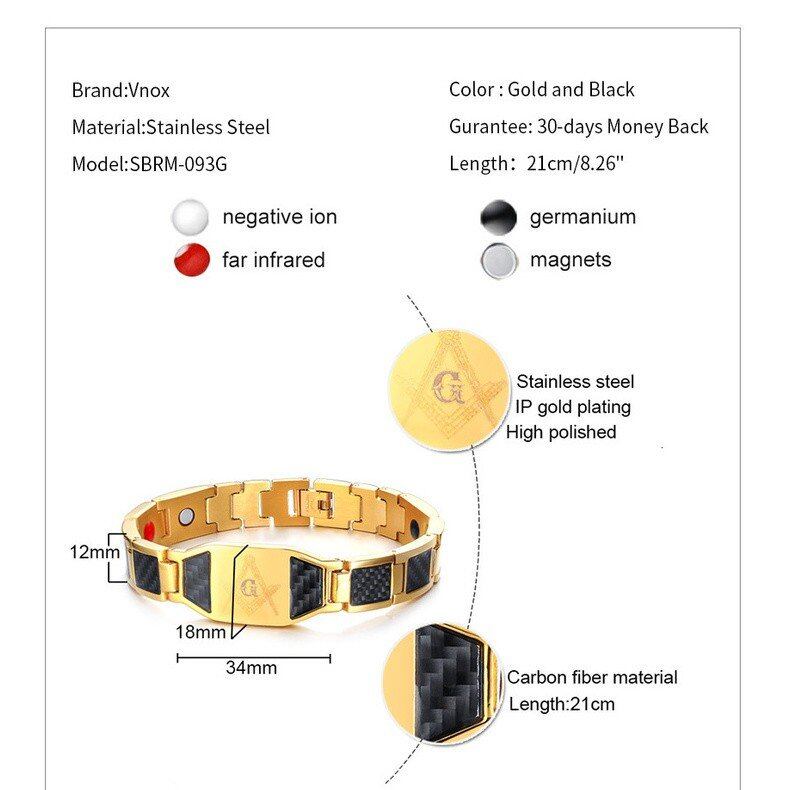 パンク 自由 石工 エネルギー ブレスレット メンズ ユニーク カーボン ファイバ マグネティック 健康 8.26