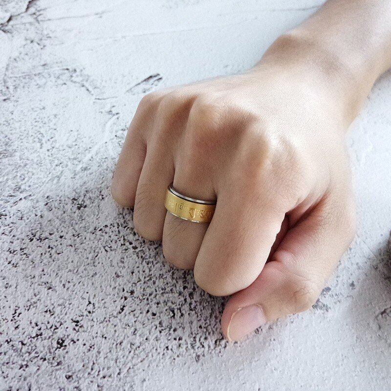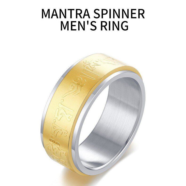 ゴールド トーン スピナー リング メンズ 8mm ステンレス ビンテージ エスニック 幸運 祈り