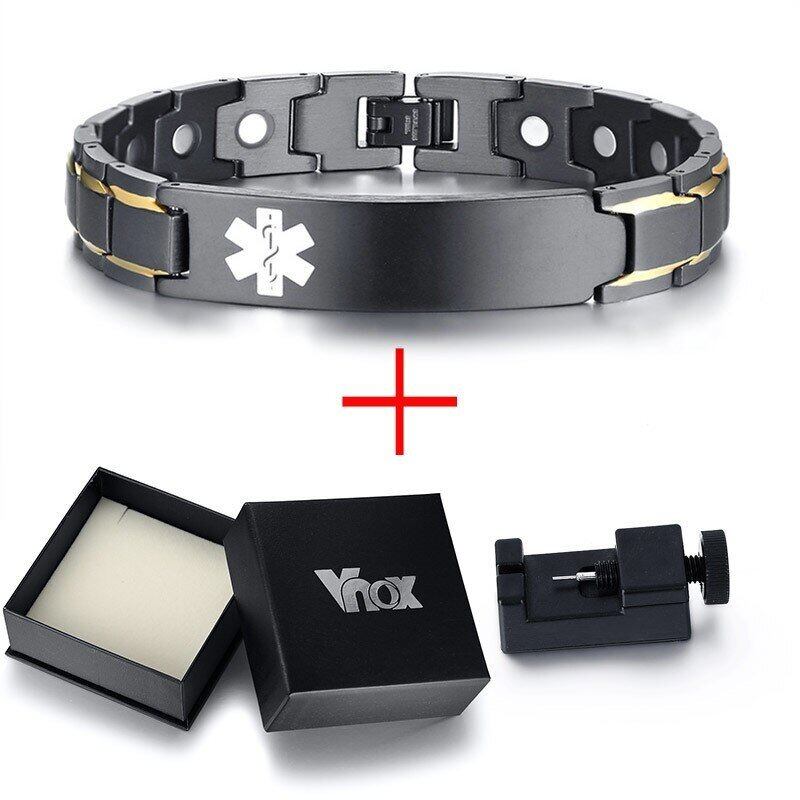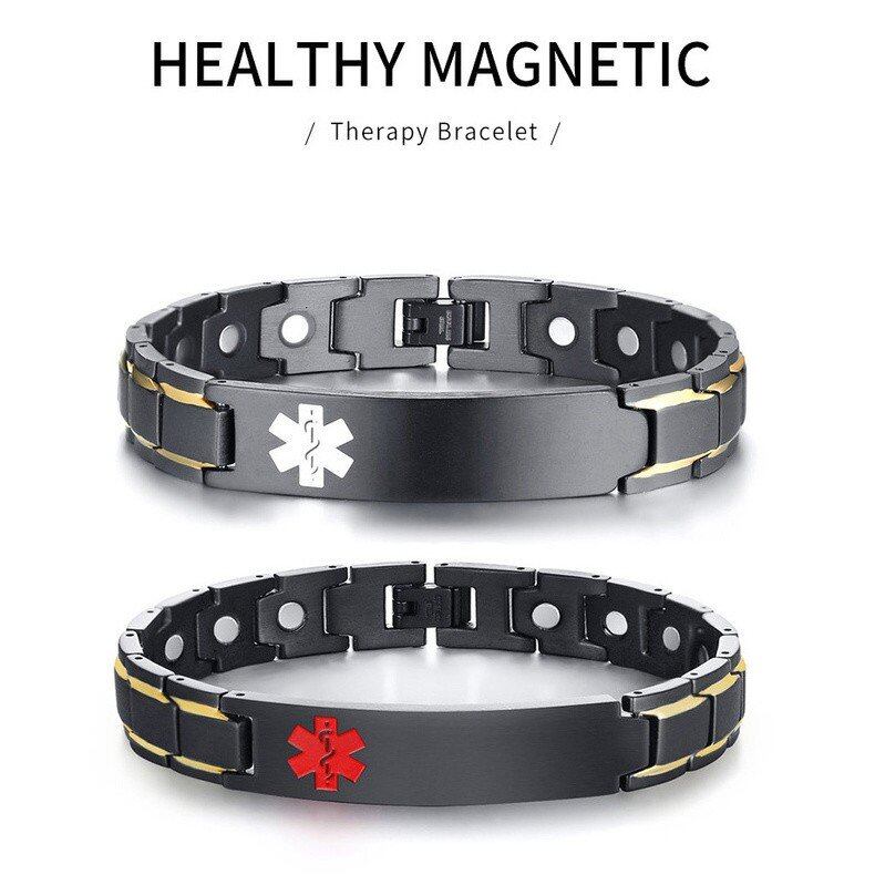 健康 医療 アラート ID ブレスレット メンズ 自由 刻印 スタイリッシュ マグネティック エネルギー 治療 手首 8.66