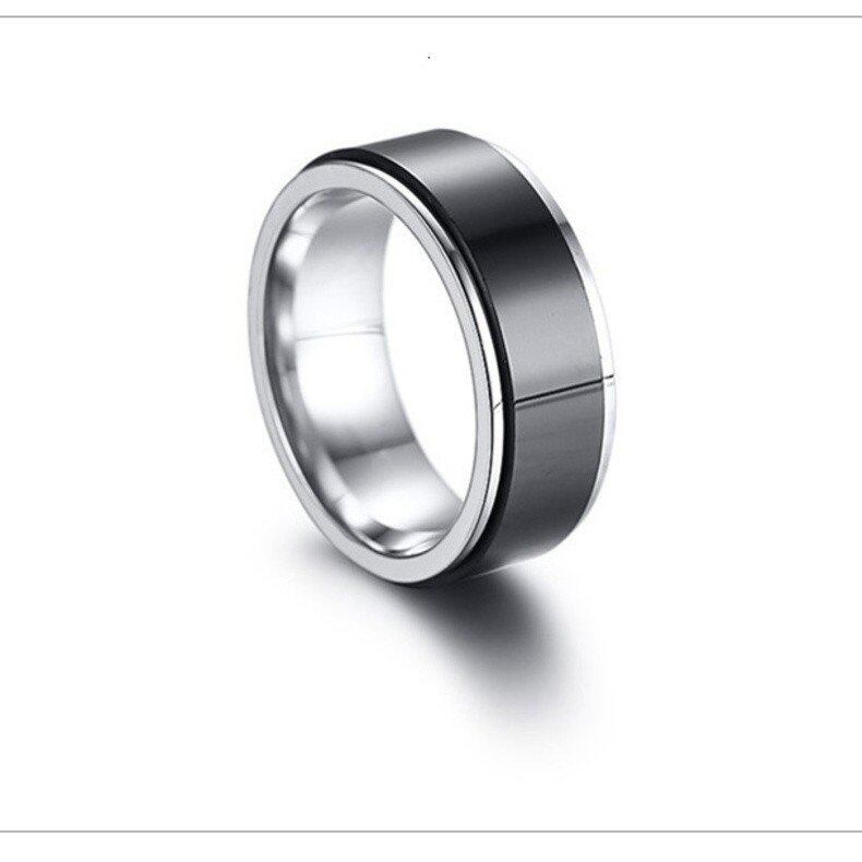 8mm 回転可能 ブラック リング メンズ ステンレス スタイリッシュ ダブル レイヤー バンド 指 アライアンス #7- #12