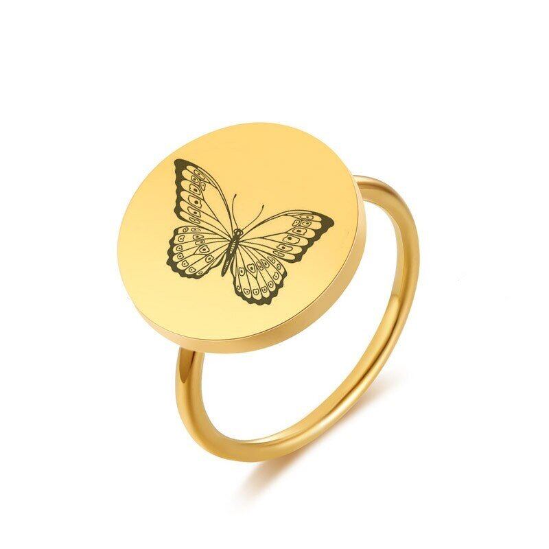バタフライ ネコ リング レディース ゴールド 色 ステンレス ユニーク サイズ 6 7 8 9
