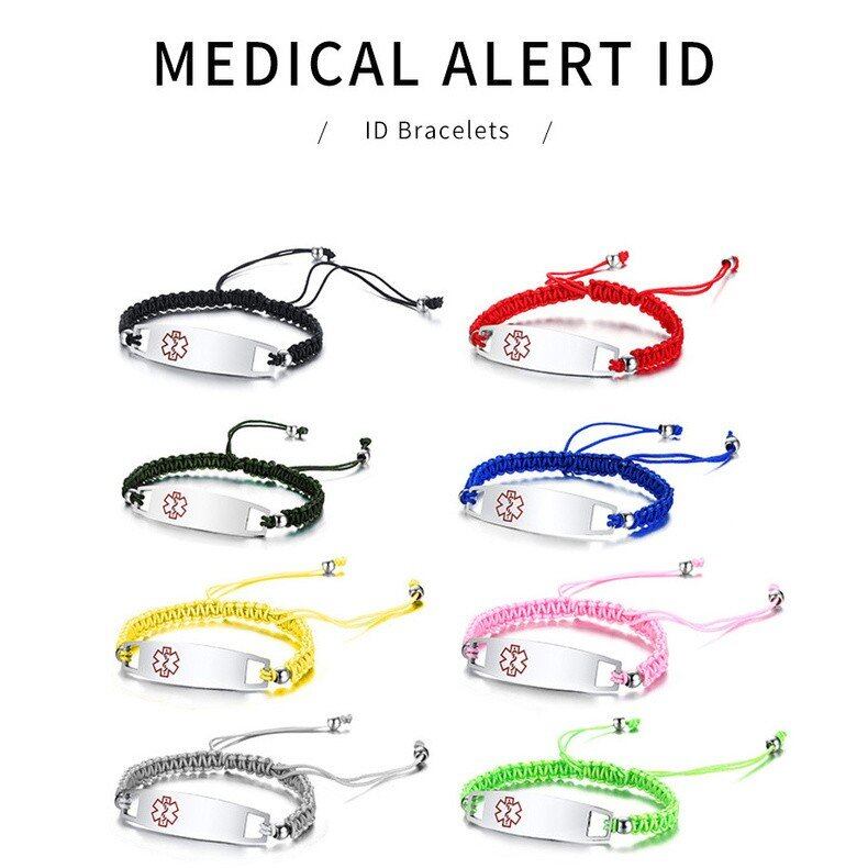 1個 医療 ブレスレット 手作り 編み ロープ ステンレス ID タグ 緊急 リマインダー 子供たち 子供