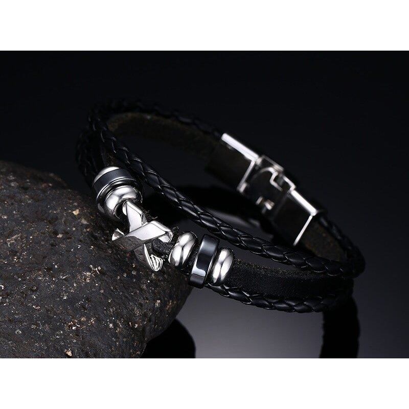 【送料無料】 メンズ ブレスレット バングル 腕輪 レザー ステンレス 留め金 40000014