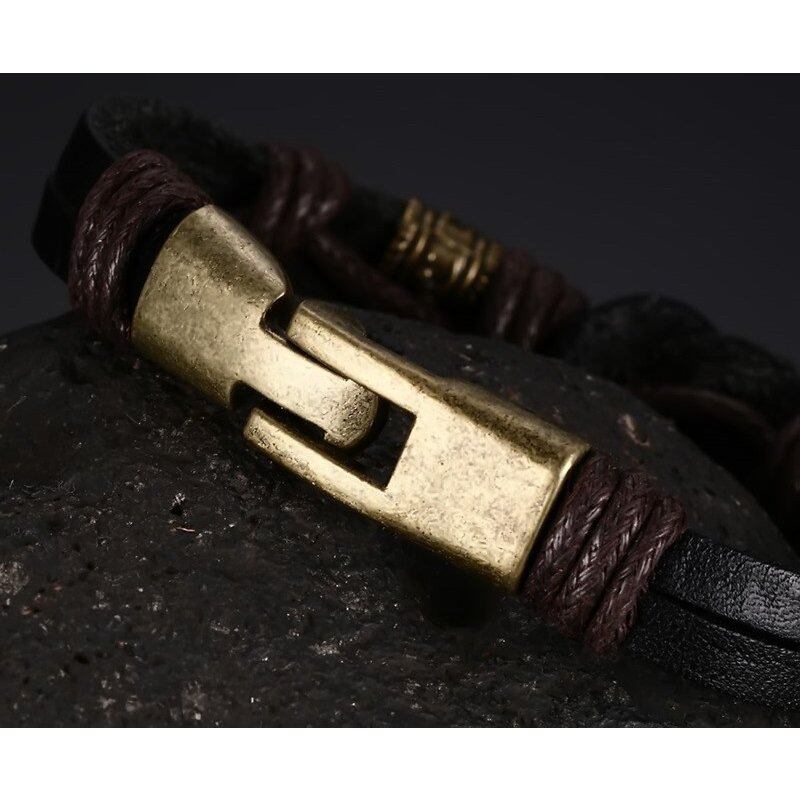 ビンテージ レザー ブレスレット ブロンズ 合金 バックル クラシカル スタイル イージー フック メンズ