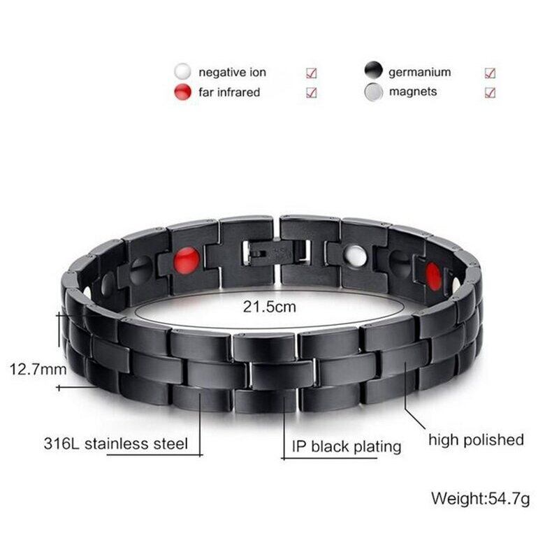 ブラック メンズ 健康 ブレスレット バングル マグネティック H パワー ステンレス チャーム ブレスレット メンズ