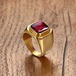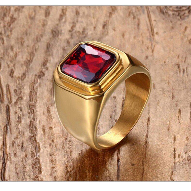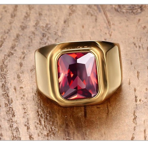 カジュアル メンズ リング 指輪 赤 レッド キュービックジルコニア 石 スクエア ステンレス ゴールド カラー デイリー メンズ サイズ