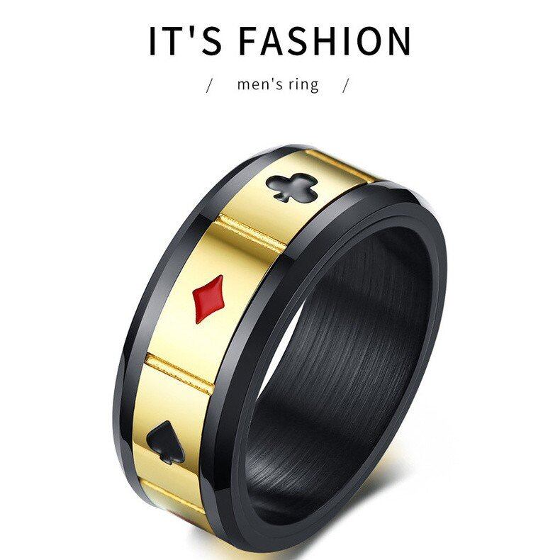 幸運 運気 メンズ スピナー リング 指輪 平和 知恵 LOVE チャーム カード ラスベガス メンズ リング ロック アクセサリー