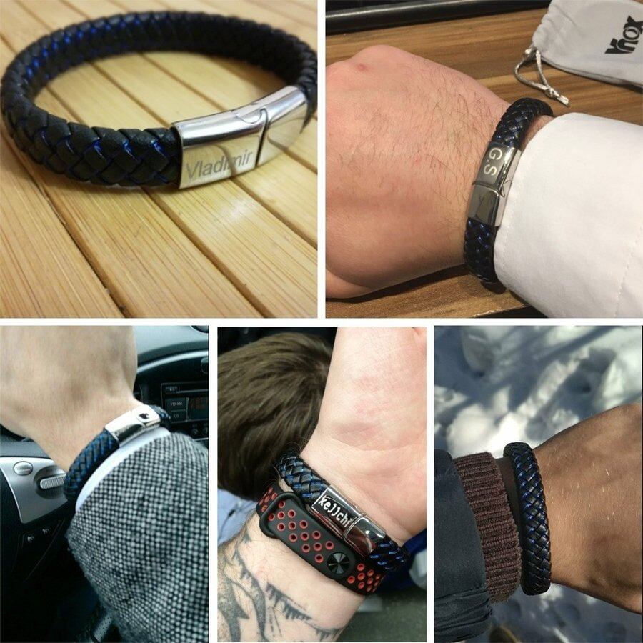 【送料無料】 刻印可能 メンズ ブレスレット バングル 青 ブルー ブラック 編み込み レザー ステンレス 40000173