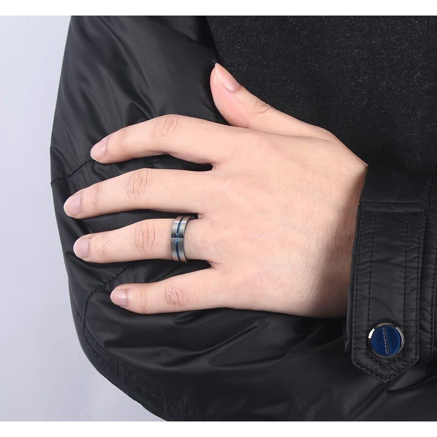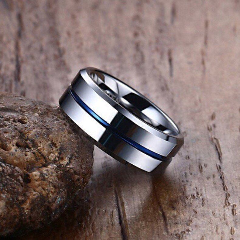 68mm シルバー 青 ブルー タングステン リング 指輪 メンズ 結婚式 バンド カジュアル デイリー メンズ リング 指輪