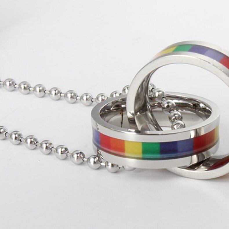 10個セット LGBT レインボー ネックレス ペンダント ステンレス プライド チェーン