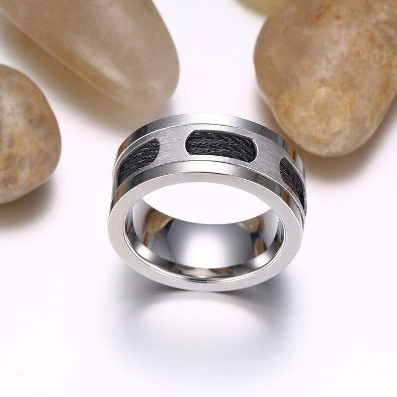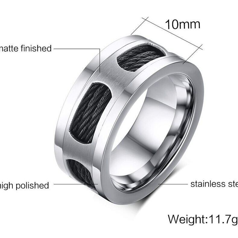 10mm ステンレス メンズ ケーブル ワイヤー リング 指輪 パーティー メンズ