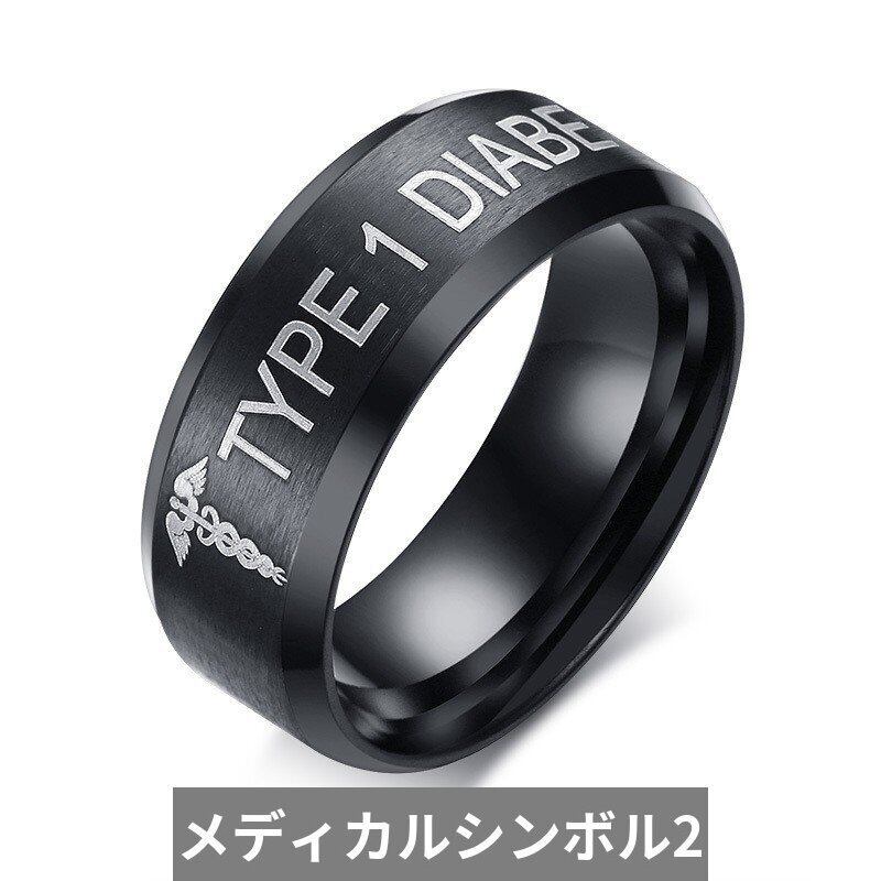 8mm 刻印 タイプ 1 メンズ リング 指輪 ブラック ステンレス メディカル アラート エマージェンシー メンズ