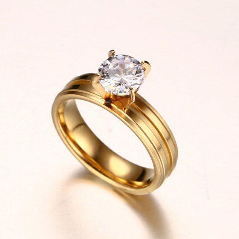 エンゲージメント リング 指輪 レディース ゴールド カラー ステンレス 大きい 石 約束