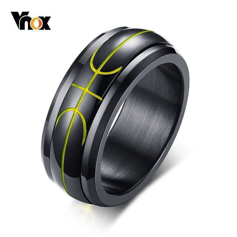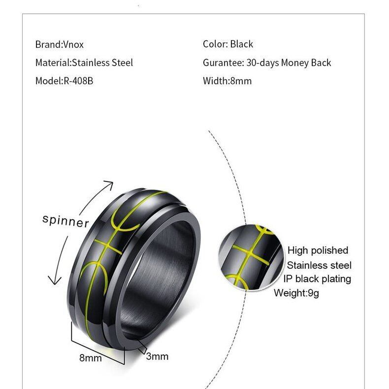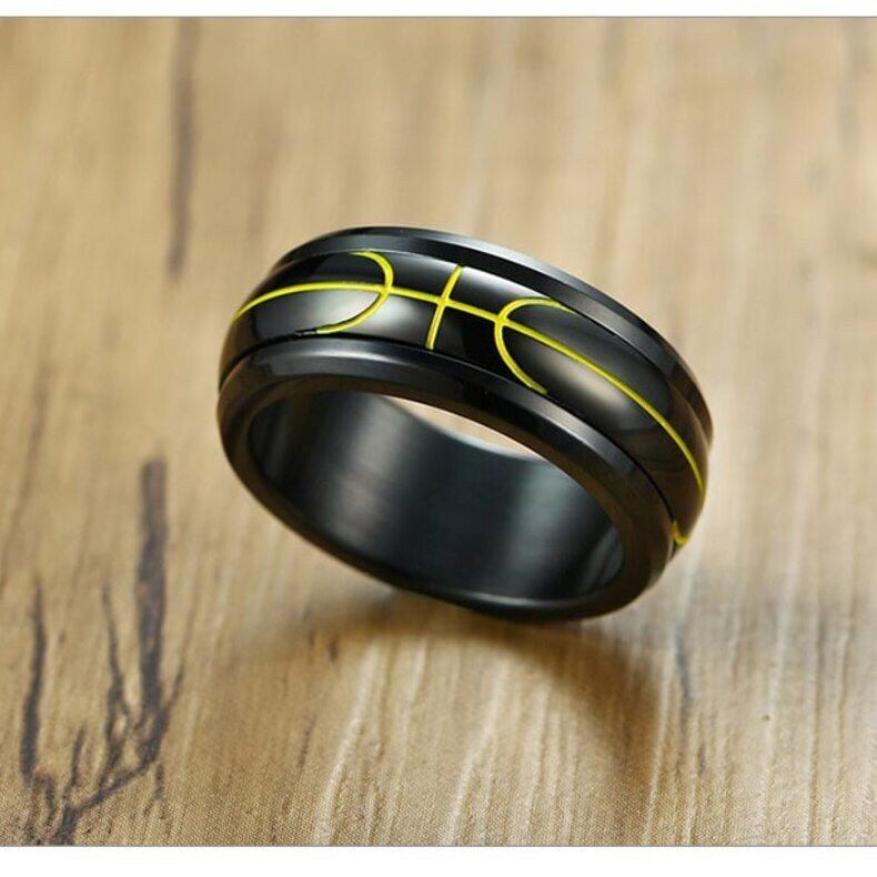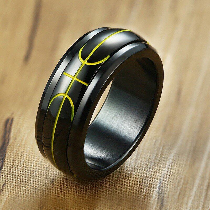 スポーツ スピナー バスケットボール リング 指輪 メンズ 8mm ステンレス 回転 バンド カジュアル メンズ リング 指輪 ボーイ リング 指輪
