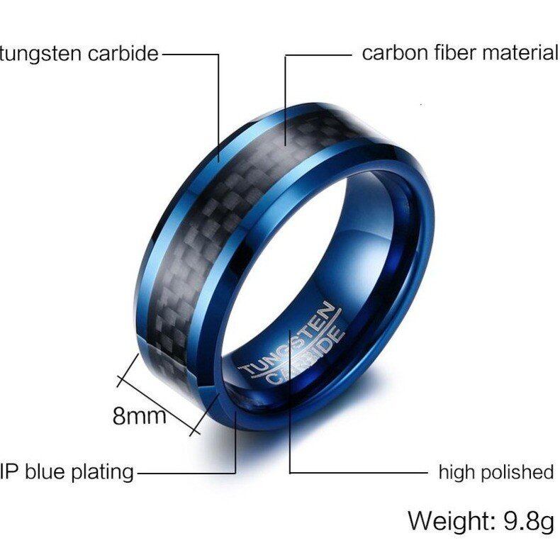 青 ブルー タングステン リング 指輪 メンズ 結婚式 バンド 8mm メンズ カーボン タングステン カーバイト メンズ リング 指輪