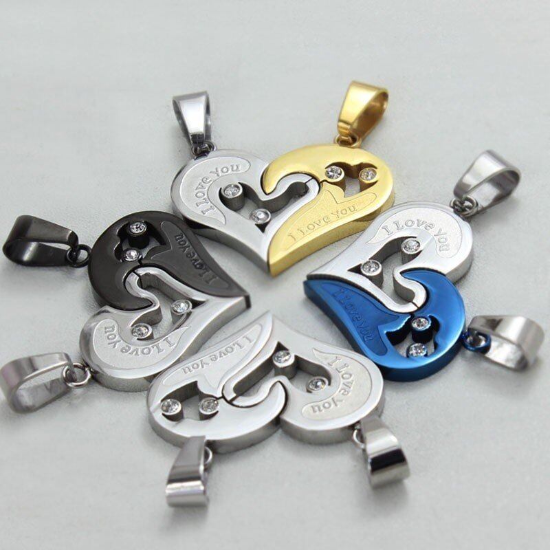 2個セット LOVE ハート カップル ネックレス ペンダント ステンレス ベストフレンド メンズ レディース チェーン