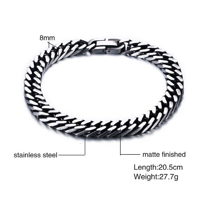 メンズ ブレスレット レトロ シルバー カラー メンズ ステンレス リンク チェーン 20cm ボックス
